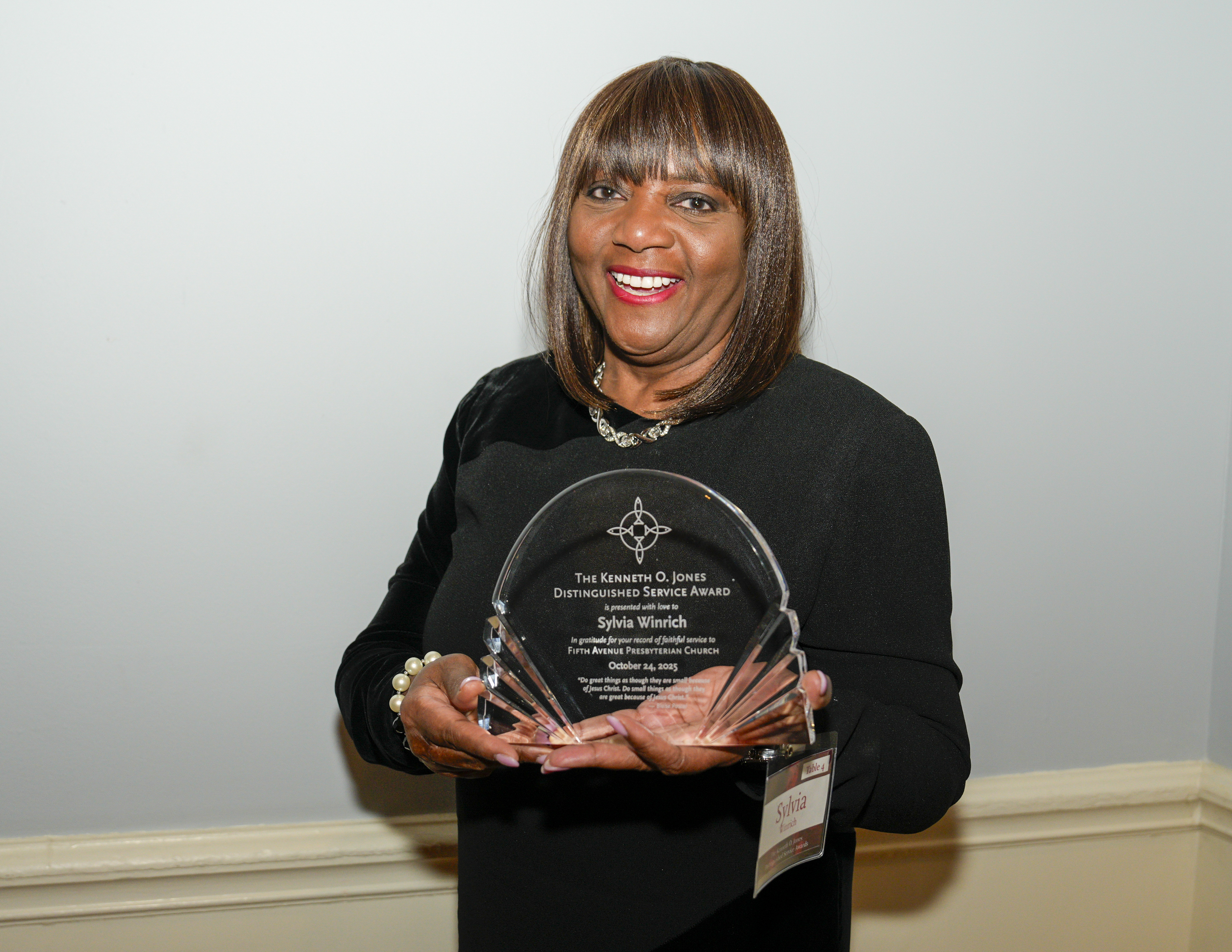 Now in its thirteenth year, the Kenneth O. Jones Distinguished Service Awards recognize members whose service and leadership have strengthened our community. The awards are named in memory of the Rev. Dr. Kenneth O. Jones, who faithfully served as an associate pastor at Fifth Avenue for thirty-three years until his death in 1996.
